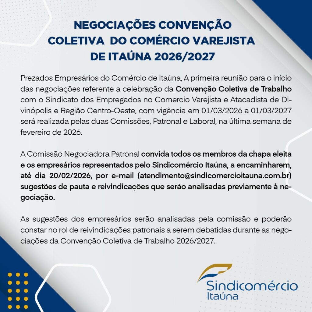 NEGOCIAÇÕES CONVENÇÃO COLETIVA DO CO´MÉRCIO VAREJISTA DE ITAÚNA 2024/2025